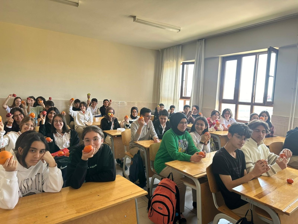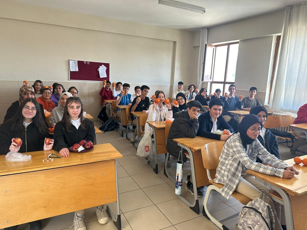 Okulumuzda, Okulumda Sağlıklı Besleniyorum (OSB) projesi kapsamında hazırlanmış olan yıllık çalışma planı doğrultusunda Proje Odak Kişisi ve aynı zamanda okul biyoloji öğretmeni olan Şerife KORKMAZ tarafından öğrencilerimizle birlikte mevsim meyvelerinden oluşan “Meyve Günü” düzenlenerek, farkındalık oluşturulmuş ve vitamin alma, doğal beslenme konuları gibi içerikler üzerinde durulmuştur.